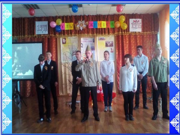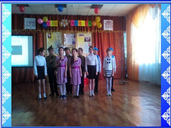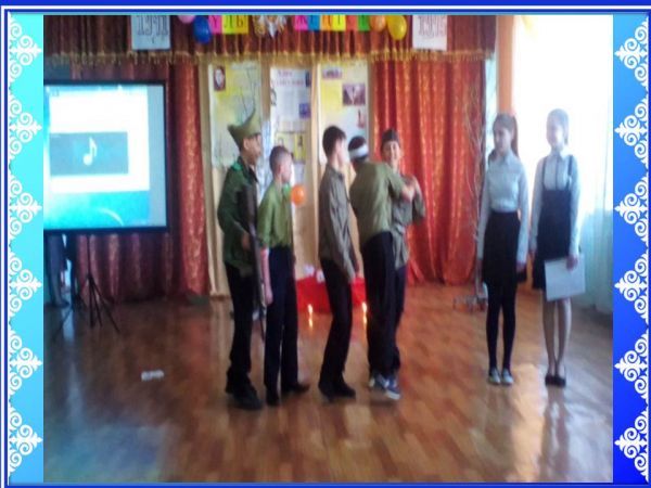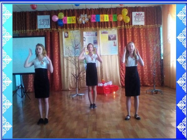 Мектеп қабырғасында 5 мамырда дәстүрге айналған 9 мамыр Ұлы Жеңіс күніне арналған «Жеңісті әуендер»атты көріністі әскери – патриоттық әндер байқауы өтті.