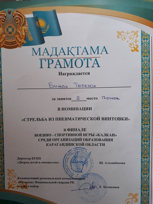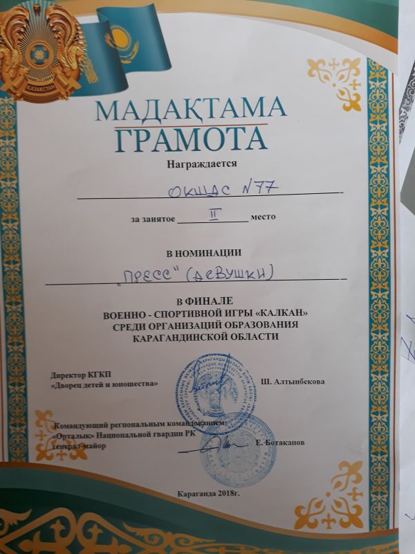 2018 жылдың 16 мамыр күні №5451 әскери бөлімінде «Қалқан» әскери-спорттық ойынының финалдық кезеңі өтті. Ойын мақсаты - өскелең ұрпақт…