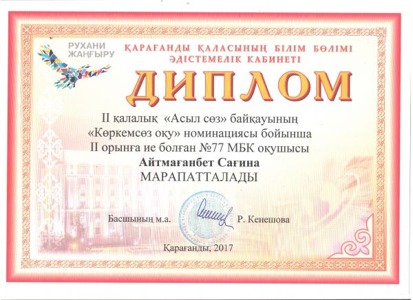 II  қалалық "Асыл сөз" байқауының жеңімпаздарын құттықтаймыз!
