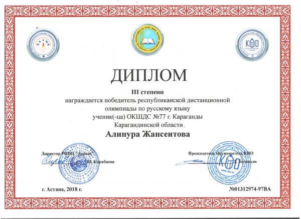 Поздравляем победителей республиканской дистанционной олимпиады по русскому языку!