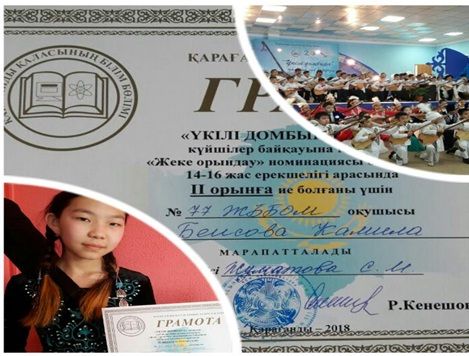 Рухани жаңғыру бағдарламасы аясында өткен «Үкілі домбыра» қалалық байқауына қатысып, Бейсова Камилла 6-в сынып оқушысы жүлделі 2 орынды жеңіп алды!