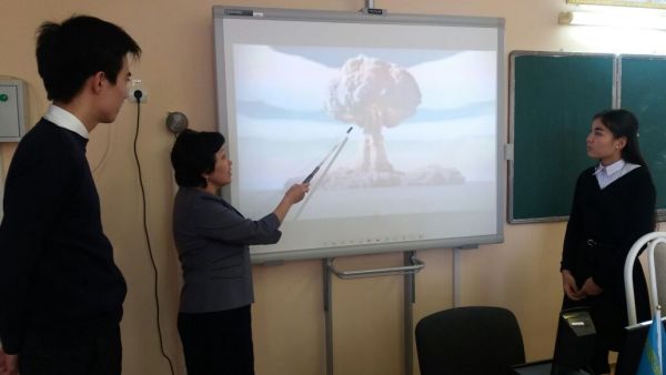 «Ядролық қарусыз әлем» тақырыбында тарих және физика пәндерінен кіріктірілген сабақ өтті.