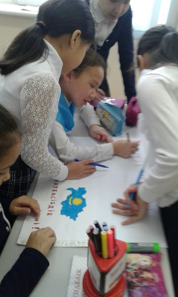 №77 мектеп-балабақша кешенінде Қазақстан Республикасы Тәуелсіздігінің 25 жылдығына арналған  «25 жұлдызды күн»  акциясы аясында 10-А; Ә сыныптарында «Ядролық қарусыз әлем…