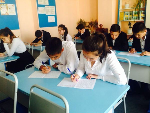 Выпускники 9 –х классов сдают государственный экзамен по казахскому и русскому языку.