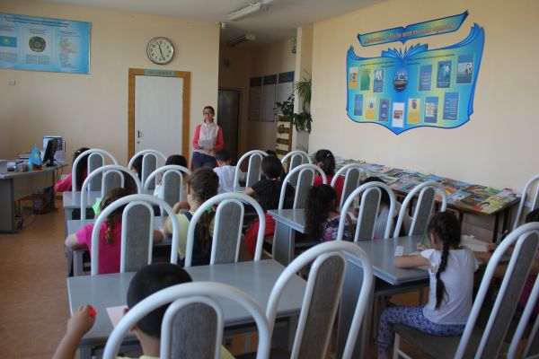 1-4 бастауыш сыныптар арасындағы жазғы мектеп оқушылары өз білімдерін толықтыруда