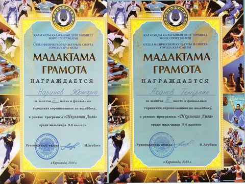 Грамотой награждаются ученики 5-6 классов ОКШДС №77 за занятое III место в финальных городских соревнованиях по волейболу, в рамках программы "Школьная лига" среди мальчиков 5-6…