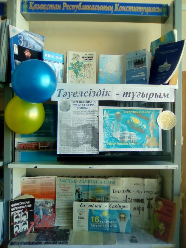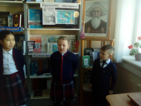Бүгін 14.12.17 мектеп кітапханасында, кітапхана меңгерушісі Жолмағамбетова Арайлым Алсаевнаның ұйымдастыруымен 2 – 4 орыс сыныптарының арасында «Тәуелсіздік - тұғырым» атты қ…