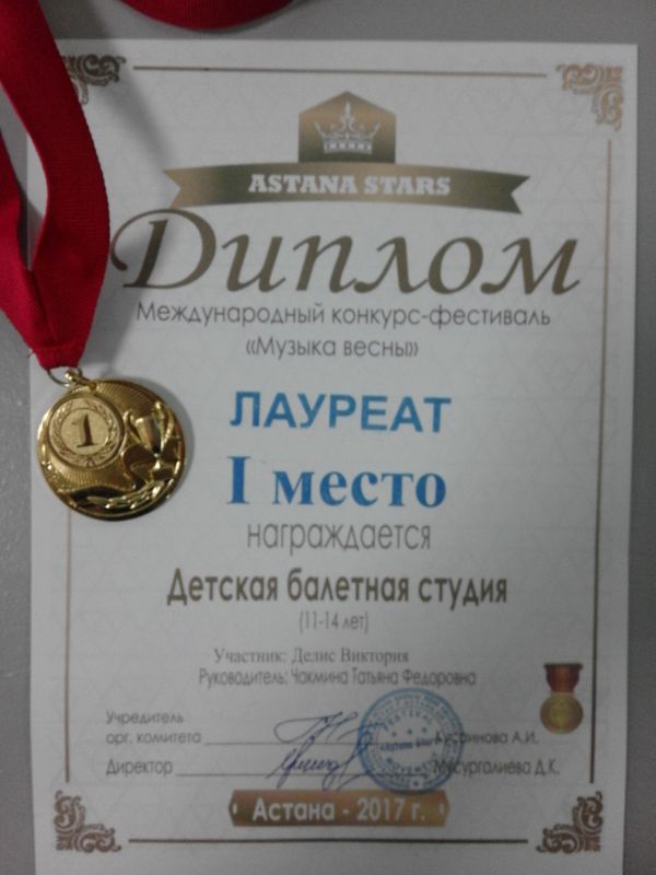 Коллектив учащихся и учителей поздравляет ученицу 6В класса Делис Викторию за занятое 1 место в международном конкурсе-фестивале «Музыка весны». Мы желаем Виктории больших побед!