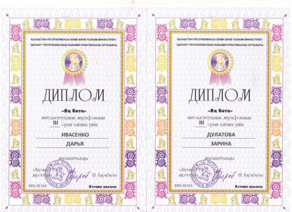 "Ақ бота" интеллектуалдық марафонында жүлделі орын алған 3-4 сынып оқушыларын құттықтаймыз!