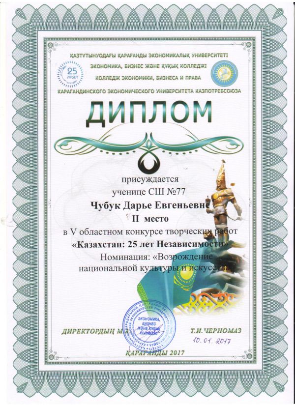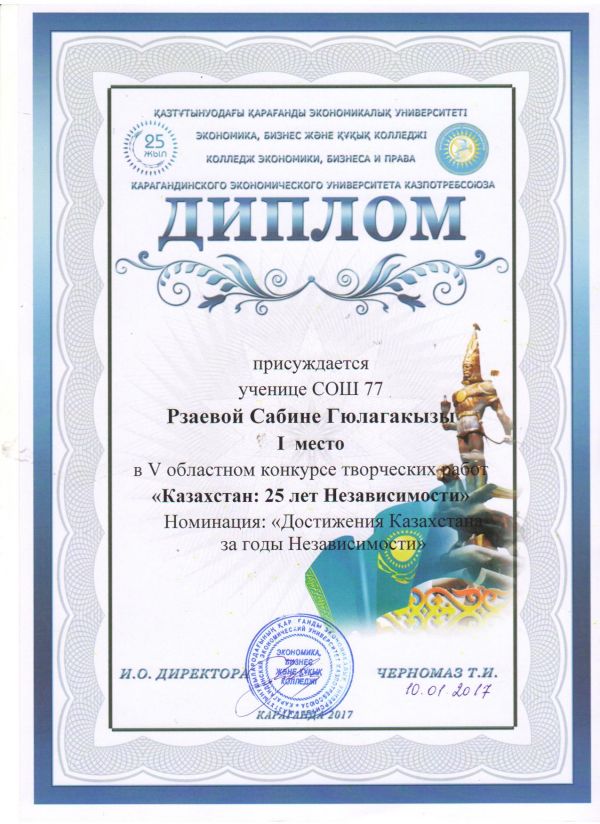 Поздравляем учеников 9 -х классов Рзаеву Сабину, Чубук Дарью, Нурмаганбетова Алтынторе, Алдабергенову Малику, Конакбаеву Сабину за занятые призовые места в V областном конкурсе творческих рабо…