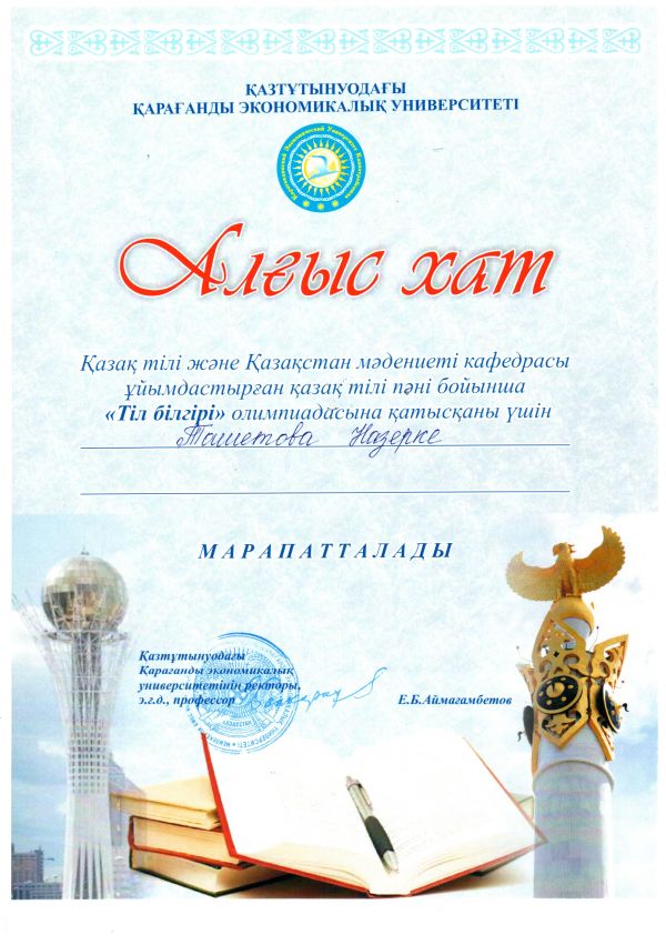 Қазтұтынуодағы Қарағанды Мемлекеттік Университетінің Қазақ тілі мен Қазақстан мәдениеті кафедрасының ұйымдастыруымен 28 қарашада 9-11-сынып оқушыларының арасында өткізілген қазақ тілі пәні бойынша &…
