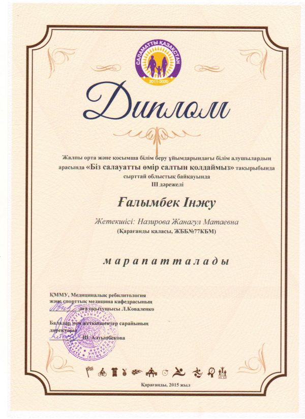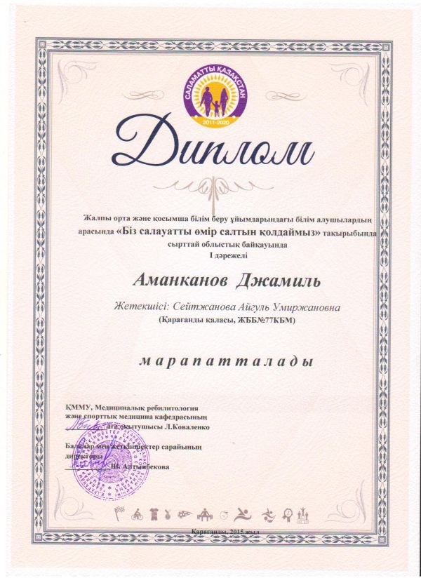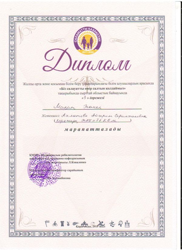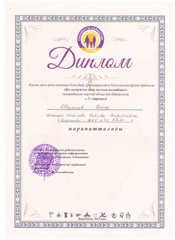 Жалпы орта және қосымша білім беру ұйымдарындағы білім алушылардың арасында " Біз салауатты өмір салтын қолдаймыз" тақырыбында облыстық байқауында мектебіміздің оқушылары белсене қатысып &…