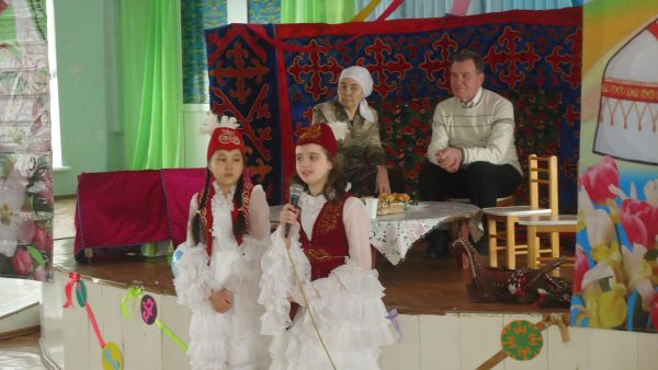 Открыта дверь для всех гостей- Для пожилых и для детей. Весна навстречу нам идет, Весна на праздник всех зовет, Народы самых разных стран Шлют поздравленья в Казахстан!    …