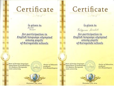 Поздравляем Рашид Амину, ученицу 4 класса  (учитель Искакова Мансия Махулбековна), победителя городской олимпиады по английскому языку среди младших школьников , организованной Карагандинским Г…