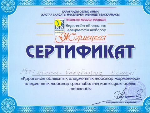 №77 мектеп-балабақша кешенінің оқушылары Ақмырза Ақжол, Ерғали Әдемі және Есбергенова Ақерке Қарағанды облысының жастар саясаты мәселелері жөніндегі басқарма ұйымдастырған әлеуметтік жобалар жәрмеңк…