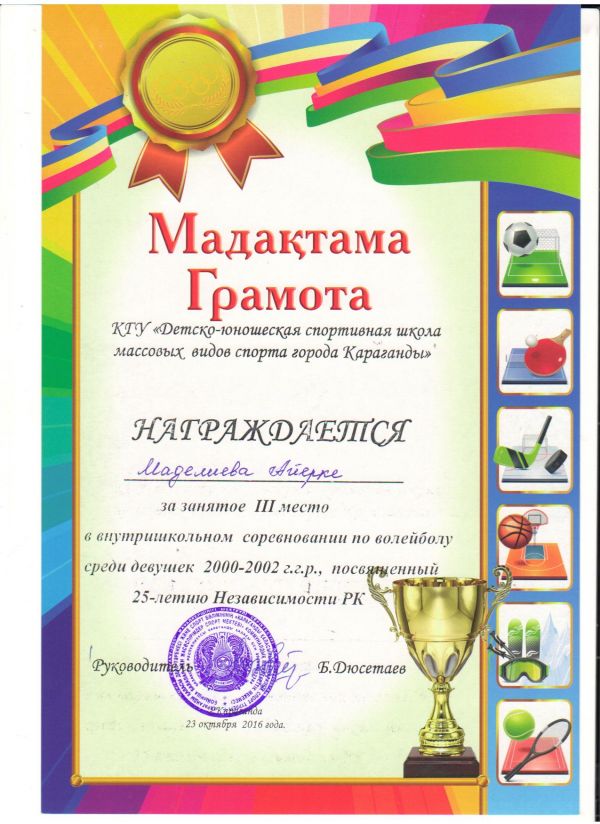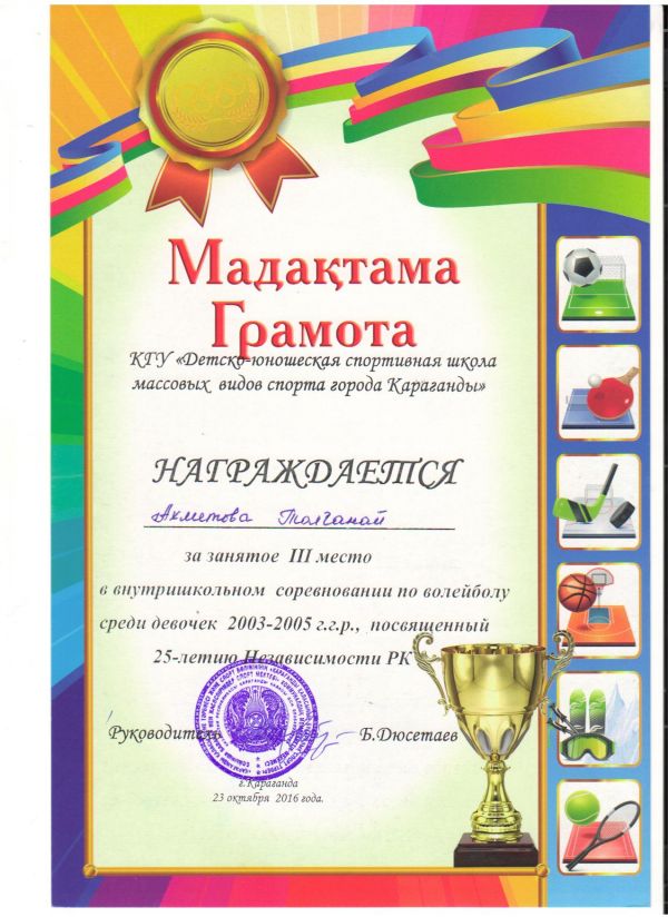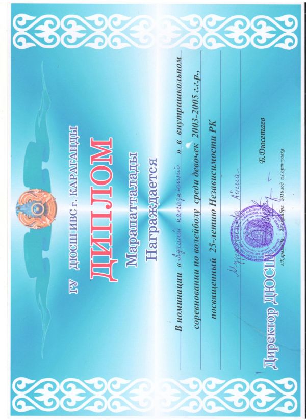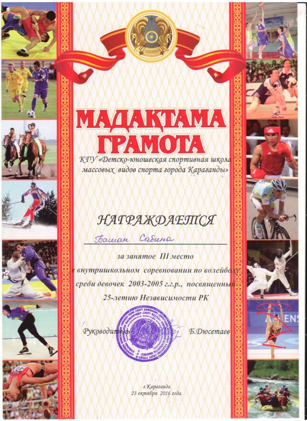 Қарағанды қаласындағы бұқаралық спорт түрлері бойынша балалар мен жасөспірімдердің спорт мектебі 2000-2002 және 2003-2005 жылдары туған қыз балалар арасында Қазақстан Республикасы Тәуелс…
