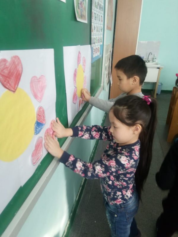Учащиеся предшкольных классов с помощью своего учителя Мейрамовой Р.А. в игровой форме делились своими размышлениями о добре, любви. Это было утро «Радостных встреч»