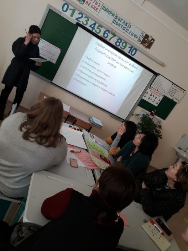 "Дарынды оқушылармен жоба жұмысын ұйымдастыру" тақырыбында 4 топта шеберлік сынып, семинар өткізілді.
