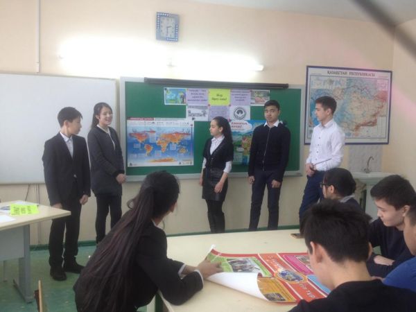 Жалпы білім беретін №77 мектеп-балабақша кешенінде 9-А; 9-Б сынып оқушылары арасында «Климаттың өзгеруі» тақырыбында танымдық сағат өтті.