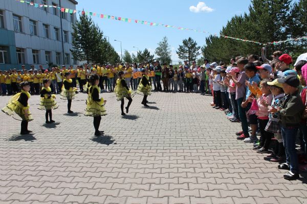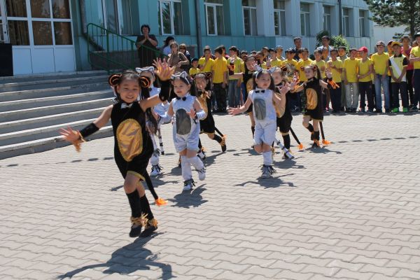 Мектеп алдындағы алаңға 6-12 жас аралығындағы 359 бала жиналды. Есігін айқара ашқанмектеп жанындағы «Ғажа…