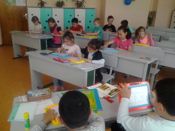 Мектепке қызығушылықпен келіп, мектеп өмірімен толық танысуда. Партада дұрыс отыру, қаламды ұстауды үйренуге келген оқушылар мұғалімдерімен тез тіл табысып кетті.