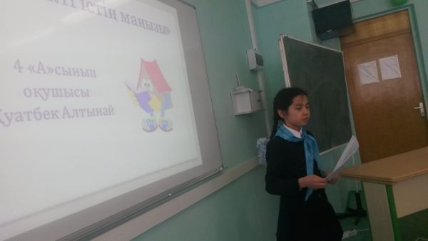 Мектебімізде «Көшбасшы» оқушылардың ғылыми қоғамының жоспарына сәйкес 14-15 наурыз күндері 1-4 сыныптар арасында «Ғылымның алғашқы баспалдағы»…