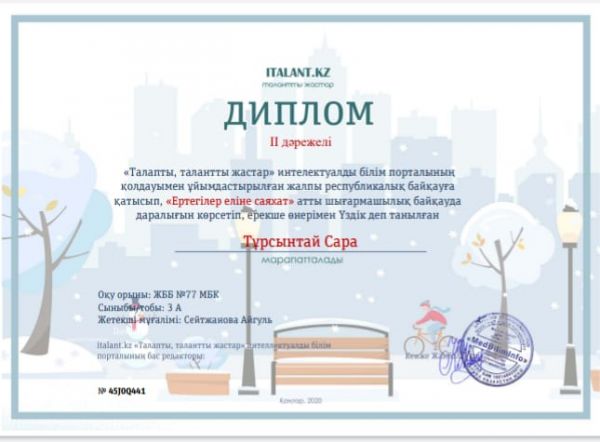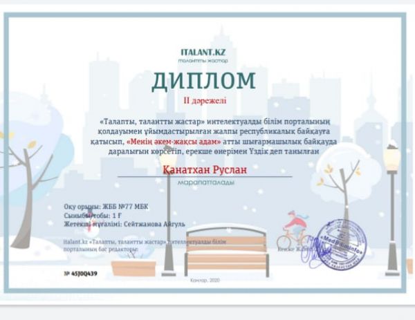 "Талапты, талантты жастар" интеллектуалды білім порталының қолдауымен ұйымдастырылған жалпы республикалық байқауға қатысып, мектебіміздің оқушылары мен ұстаздары түрлі номинацияларын жеңіп…