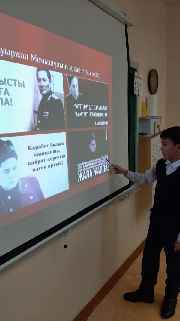 Оқу жылының басынан бастап Ұлы Отан соғысының даңқты жауынгері, жазушы - Бауыржан Момышұлының 110 жыл толуына орай іс-шаралар жүйелі түрде өткізіліп келеді.