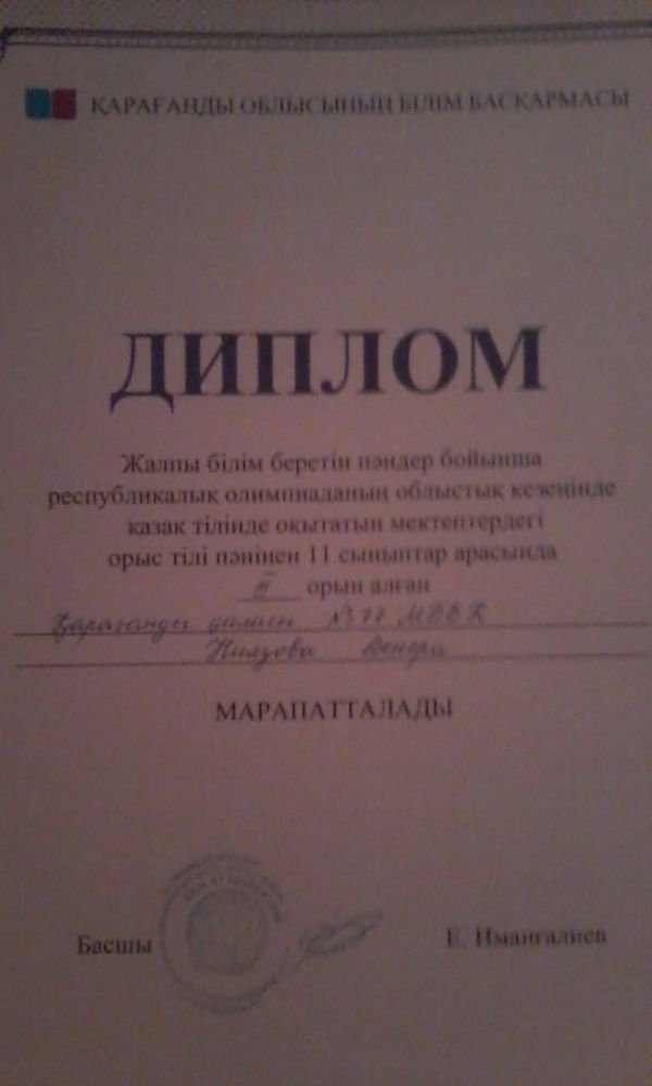 Жалпы білім беретін пәндер бойынша республикалық олимпиаданың облыстық кезеңінде қазақ тілінде оқытатын мектептердегі орыс тілі пәнінен мектебіміздің 11 сынып оқушысы Ниязова Венера III орынға…