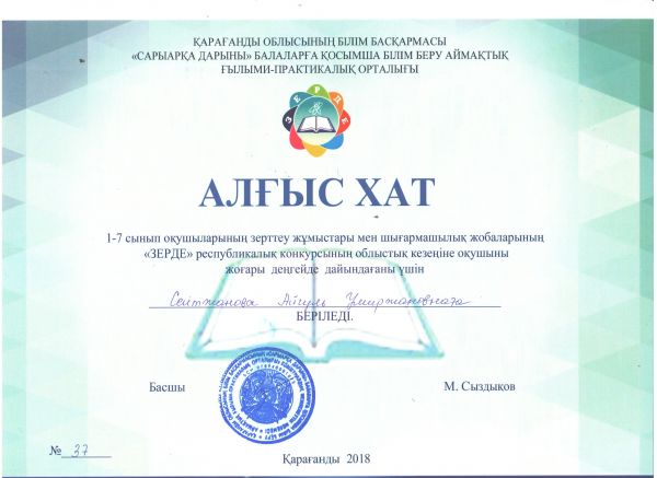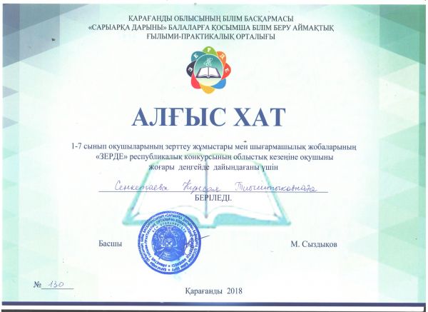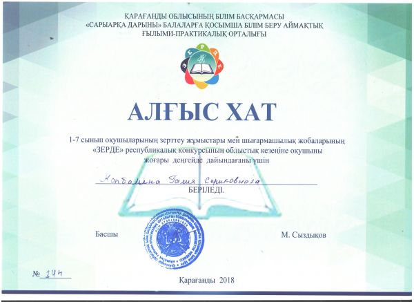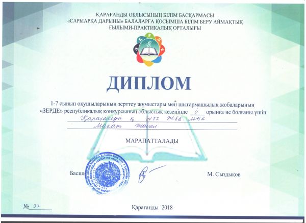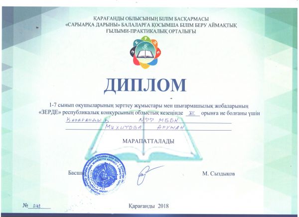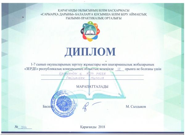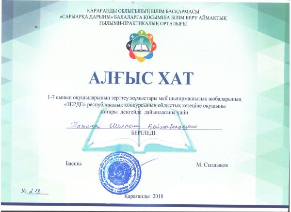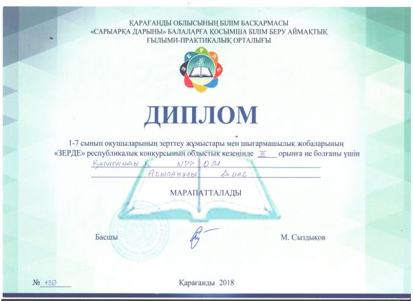 1-7 сынып оқушыларының зерттеу жұмыстары мен шығармашылық жобаларының "ЗЕРДЕ" республикалық конкурсының облыстық кезеңінде мектебіміздің оқушылары жоғары деңгейде нәтиже көрсетіп әр секция…