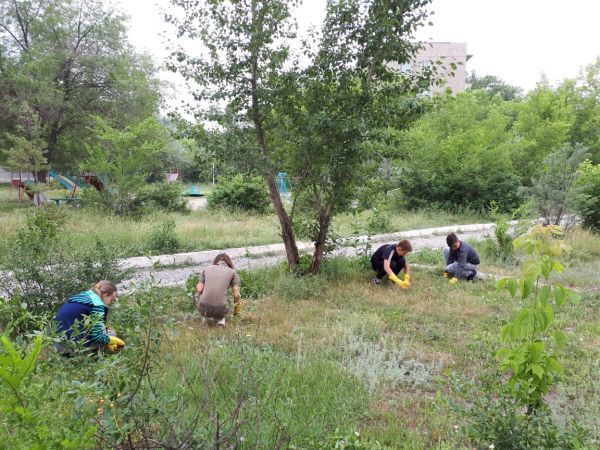 Продолжается работа экобригады ІІI сезона. Учащиеся 6-8 классов заняты благоустройством двора: обрезка высокой травы, стрижка кустарников, полив цветника, рыхление клумб.