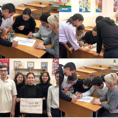25.11.2022 г. в рамках недели Толерантности учащиеся 9 «А» класса вместе с классным руководителем Худякова Д.М. и педагогом-психологии школы Сидоренко Н.В. составили памятку «9 шаг…