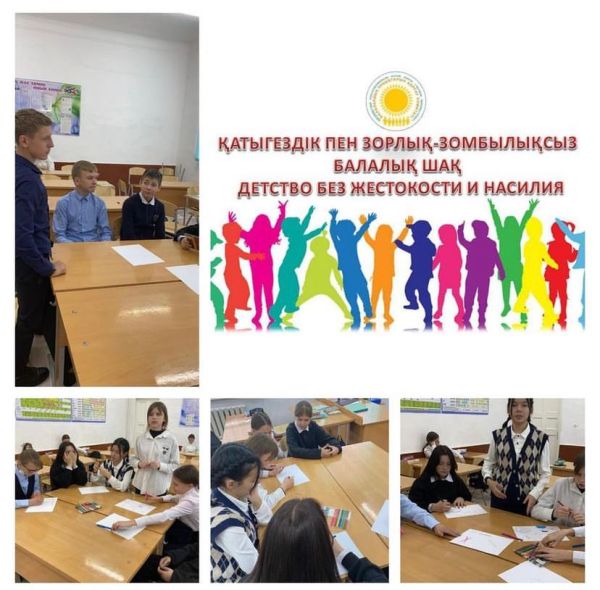 17.11.2022 среди 8х классов в КГУ "ОСШ 64" прошёл круглый стол,где ребята обсудили тему "Насилие и жестокое отношение в отношении детей в организациях образования". Цель: правово…
