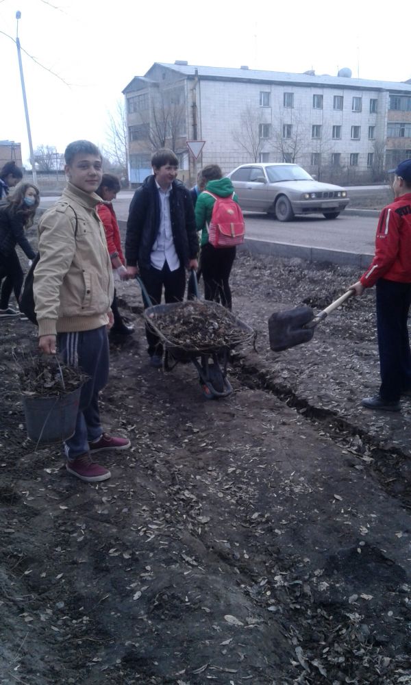 В связи с благоустройством, санитарной очистке и озеленения былоорганизовано активное участие всех сотрудников и учащихся ОСШ № 64 всубботнике.