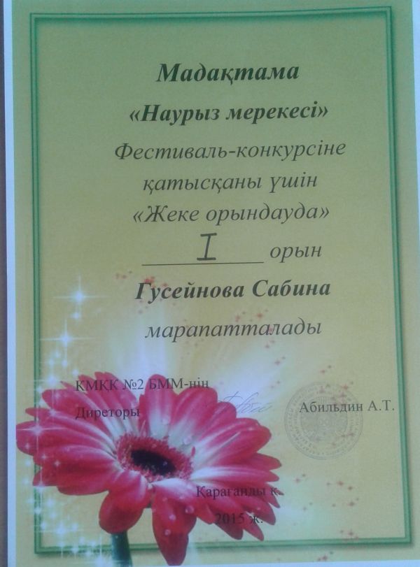 Поздравляем Жарких Виктора,Андрееву Елизавету,Маратову Алину,Чернявскую Марию,Астанкову Екатерину за занятое 2 и 3 место в областном конкурсе " Зерде"