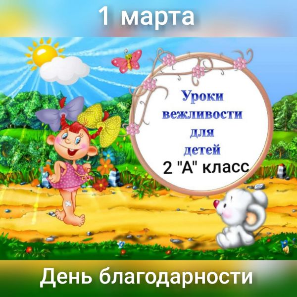1.03.21 г. с ребятами 2 "А" класса ко Дню благодарности проведён "Урок вежливости" . Цель которого: воспитание у детей вежливости, доброжелательности и умения дорожит…