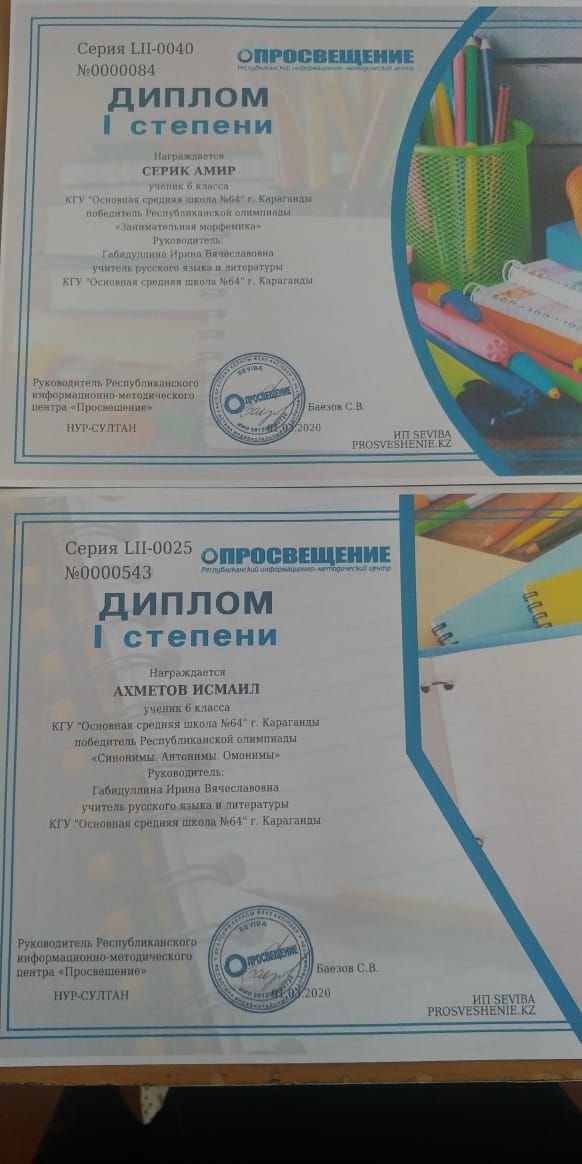 Орыс тілі пәні бойынша қашықтықтан өтетін республикалық олимпиада жеңімпаздарын құттықтаймыз! 1 дәрежелі дипломмен 6 а сынып оқушылары Ахметов И., Серік А. марапатталды.