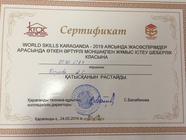 Учащиеся 9 класса прошли мастер класс декаротивно прикладного искусства в Карагандинском технико - строительном колледже . Для всех учащихся мероприятие проходило в виде концерта . В конце детям вручили сертификаты