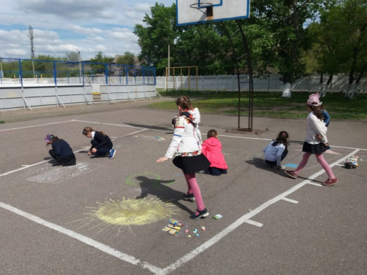 ученики 2 класс на классном часу после прохождения темы Техники безопасности как вести себя в общественных местах провели конкурс рисунков на асфальте.