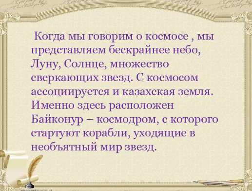 Дорога в космос   01.04.2021г, на платформе Google classroom, среди учащихся 1-3классов,жас кырановцев,  воспитателем Маштыбаевой.А.Е, был проведен воспитательный час на тему"Доро…