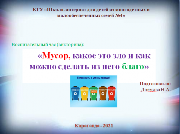 Мусор, какое это зло и как можно сделать из него благо     07.04.2021г, среди учащихся  3 – 4 классов, воспитателем  Дремовой Н.А. дистанционно был проведён воспитатель…