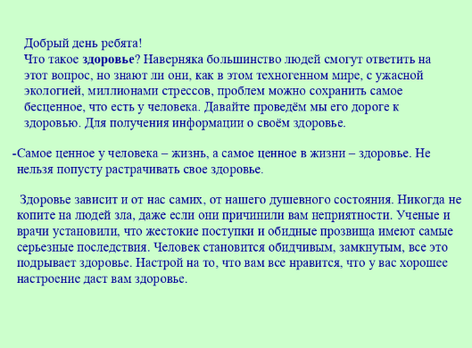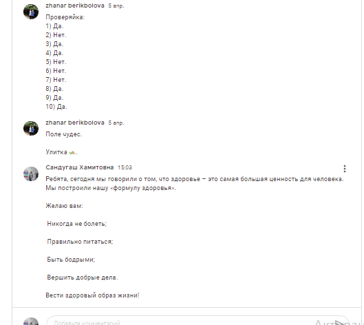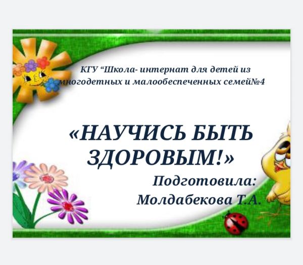 Научись быть здоровым! 07.04.2021 г., среди учащихся 2-6 классов , воспитателем Молдабековой Т.А. на платформе Google classroom, был проведен воспитательный час на тему «Научись быть здоровы…