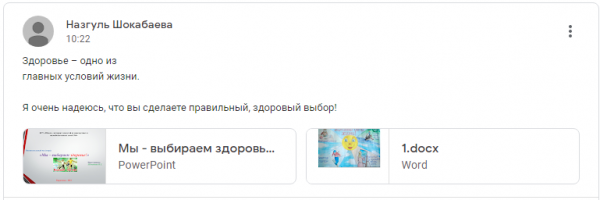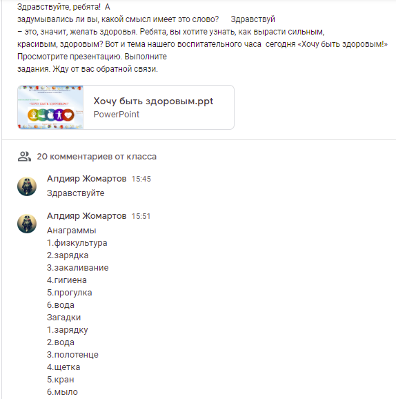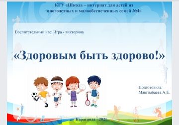 Здоровым быть здорово!    08.04.2021 года, на платформе Googleclassroom, среди учащихся 1-3 классов воспитателем Маштыбаевой А.Е. был проведен воспитательный час « Здоровым быть зд…