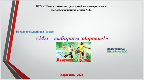 Мы – выбираем здоровье!             07.04.2021 г., на платформе Googleclassroom, среди учащихся 6 - 7 классов, воспитателем Шокабаевой Н.С…