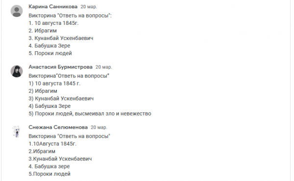20.03.2021 г., среди учащихся 6 – 7 классов, воспитателем Шокабаевой Н.С. дистанционно был проведён воспитательный час (викторина) на тему «Вел…