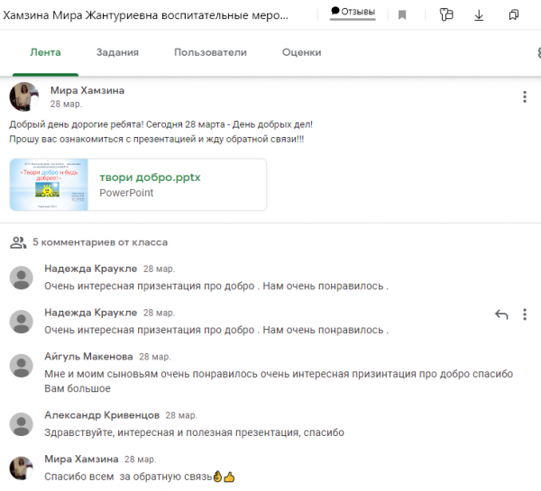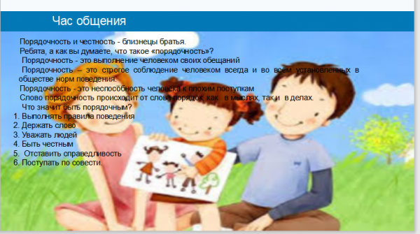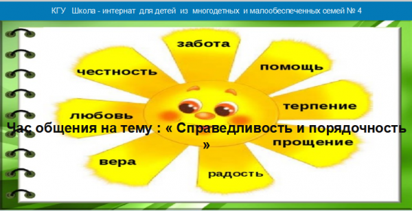 29 марта, на платформе Гугл классрум,был проведен час общения на тему : «Справедливость и порядочность ».