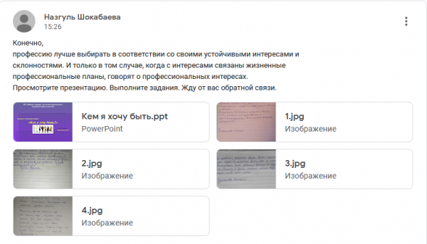 01.04.2021 г. среди учащихся 6 – 7 классов воспитателем Шокабаевой Н.С. дистанционно была проведена беседа (с элементами игры) на тему «Кем я хочу быть…