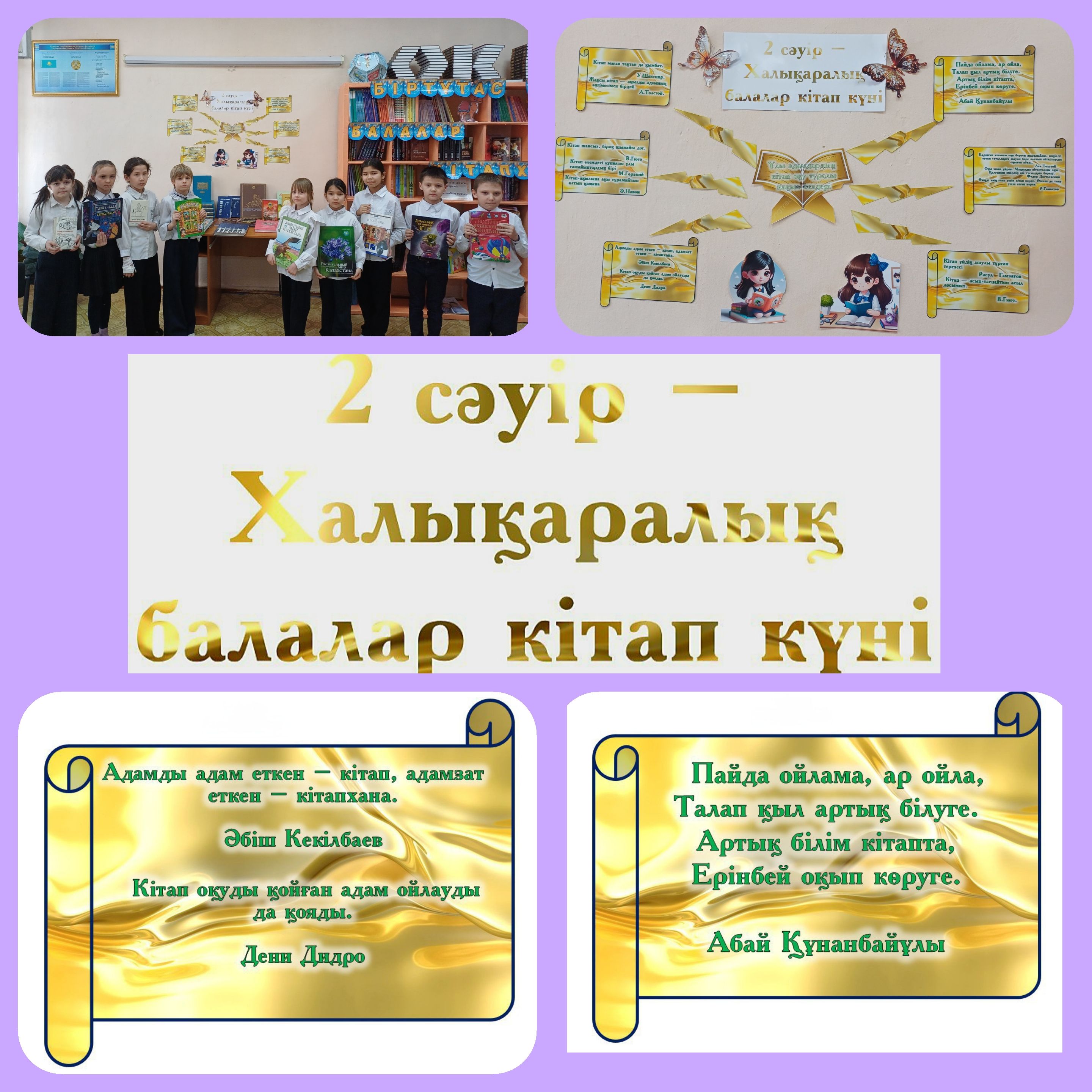 Халықаралық балалар кітабы күні            2 сәуір, мектеп кітапханасында 4 сынып оқушыларымен бірге меңгеруші.кітапханашы А. С. Сейдахметовамен &quo…