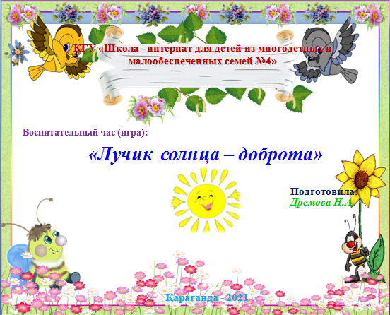 05.02.2021 г, в дистанционном формате, среди учащихся 1б и 2б классов, воспитателем Уалиевой А.К. был проведен воспитательный час (игра) на тему «Поговорим о доброт…