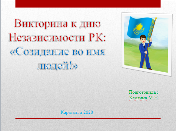 Под таким названием, 10.12.2020 г, на платформе Гугл класса, Хамзиной М.Ж. была проведена викторина «Созидание во имя людей!» , п…